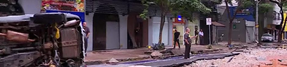Moradores também registraram uma explosão de gás no subsolo de um prédio tomado pela chuva.