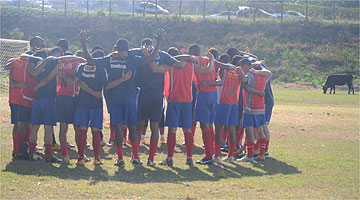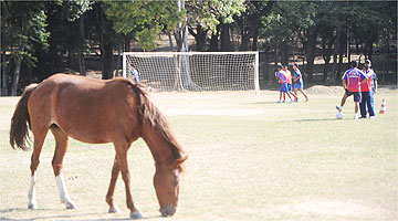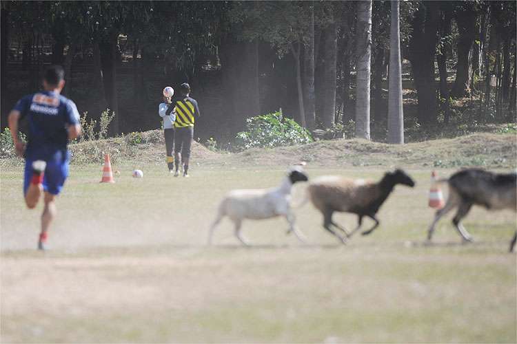 Equipe de Santa Luzia treina com animais em campo; atletas reclamam de penúria em alojamento