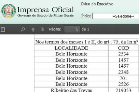 A grafia incorreta da cidade aparece três vezes na publicação Reprodução/ DOEMG