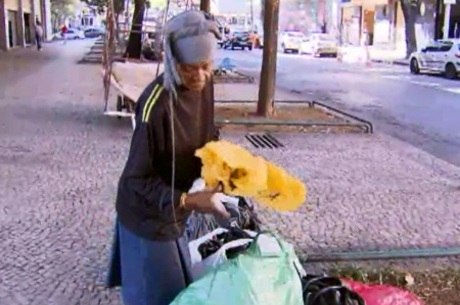 Moradora de rua ajuda garis a varrer diariamente o centro de BH