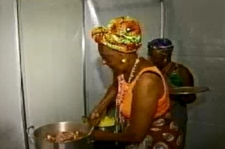 Com vestes típicas, As moradoras de uma comunidade quilombola preparam o frango com orapronobis e angu. O molho suculento na panela vai ser servido com carne de sol dentro do pão. Uma pitada de cebolinha e alho para acompanhar. O prato bonito e saboroso leva o nome de Fornada Calulu.