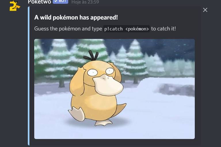 Já no Poketwo, o objetivo é se tornar um rabi Pokémon. Para tanto, porquê na animação japonesa, é preciso conquistar pokémons –no Discord, isso é feito escrevendo o nome da indivíduo no chat– e vencer batalhas contra outros aspirantes a mestres. Não conseguimos chegar tão longe.